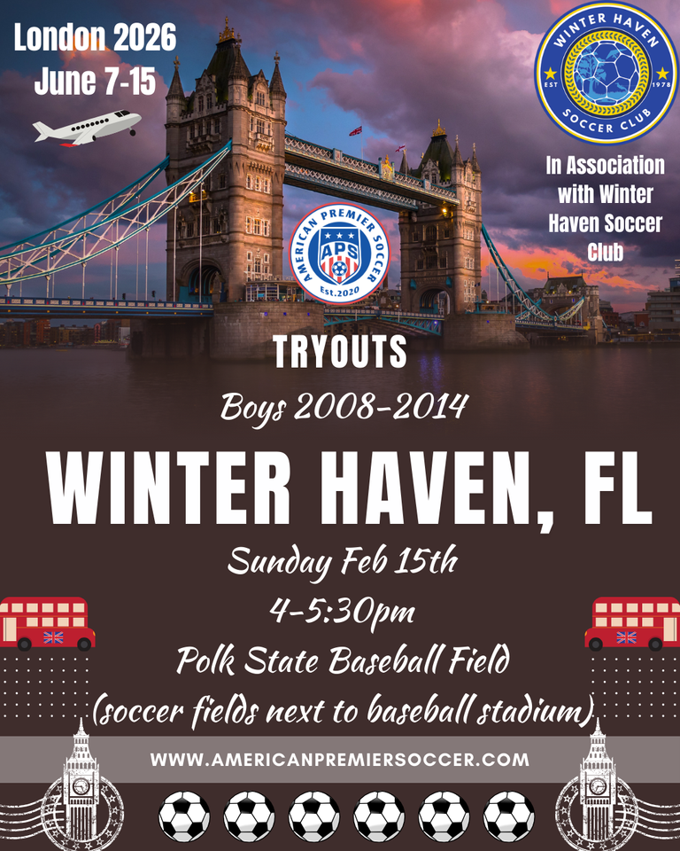 American Premier Soccer in partnership with Winter Haven Soccer Club are pleased announce this unique, once-in-a-lifetime opportunity, and we strongly believe that spending a week in Europe during the summer brings tremendous joy, inspiration, and motivation to young players. Every year, we see players return to their clubs more inspired, confident, and excited about their development.